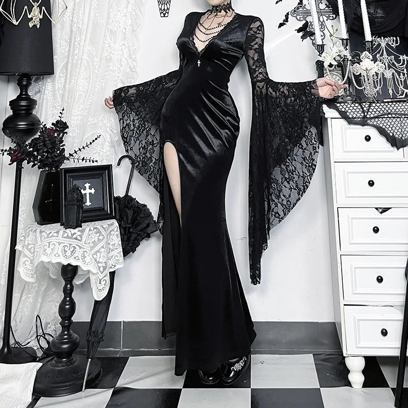 The Gothic Lace Batwing Sleeve Velvet Dress is adaptable, suitable for a wide range of occasions. Its drama and elegance make it an ideal choice for special events.