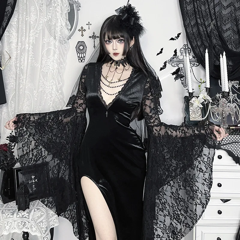 Unveiling the Enthralling Gothic Lace Batwing Sleeve Velvet Dress: A Comprehensive Guide